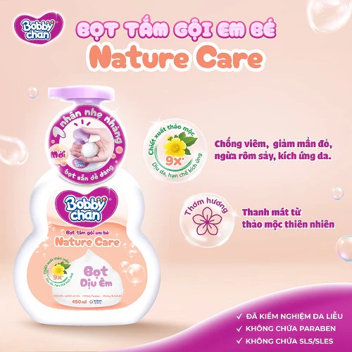 Việc chọn bột tắm gội cho bé phù hợp ngay từ những tháng đầu đời là bước quan trọng để bảo vệ làn da nhạy cảm và mái tóc mềm mượt của con yêu. Trong số các sản phẩm sữa tắm gội dành riêng cho trẻ nhỏ, Bobby Chan Nature Care 450ml cam nổi bật như một lựa chọn chuyên biệt dành cho bé sơ sinh và bé có da nhạy cảm, nhờ công thức dịu nhẹ, thành phần lành tính giúp vệ sinh da và tóc an toàn mỗi ngày.