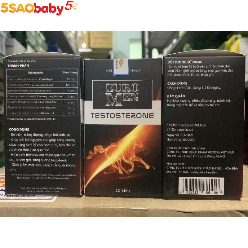 Viên uống EURO MEN có các thành phần từ thiên nhiên giúp giúp bổ thận, tráng dương, phục hồi sinh lực, hỗ trợ cải thiện khả năng sinh lý, giúp bồi bổ nguyên khí, kéo dài và cải thiện thời gian quan hệ, tăng sản sinh testosterone, hỗ trợ cải thiện và làm chậm quá trình mãn dục ở nam giới.